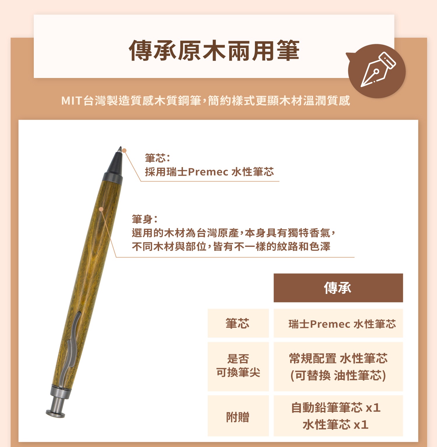 原木兩用筆(圓珠筆+自動鉛筆) 瑞士 Premec 水性筆芯