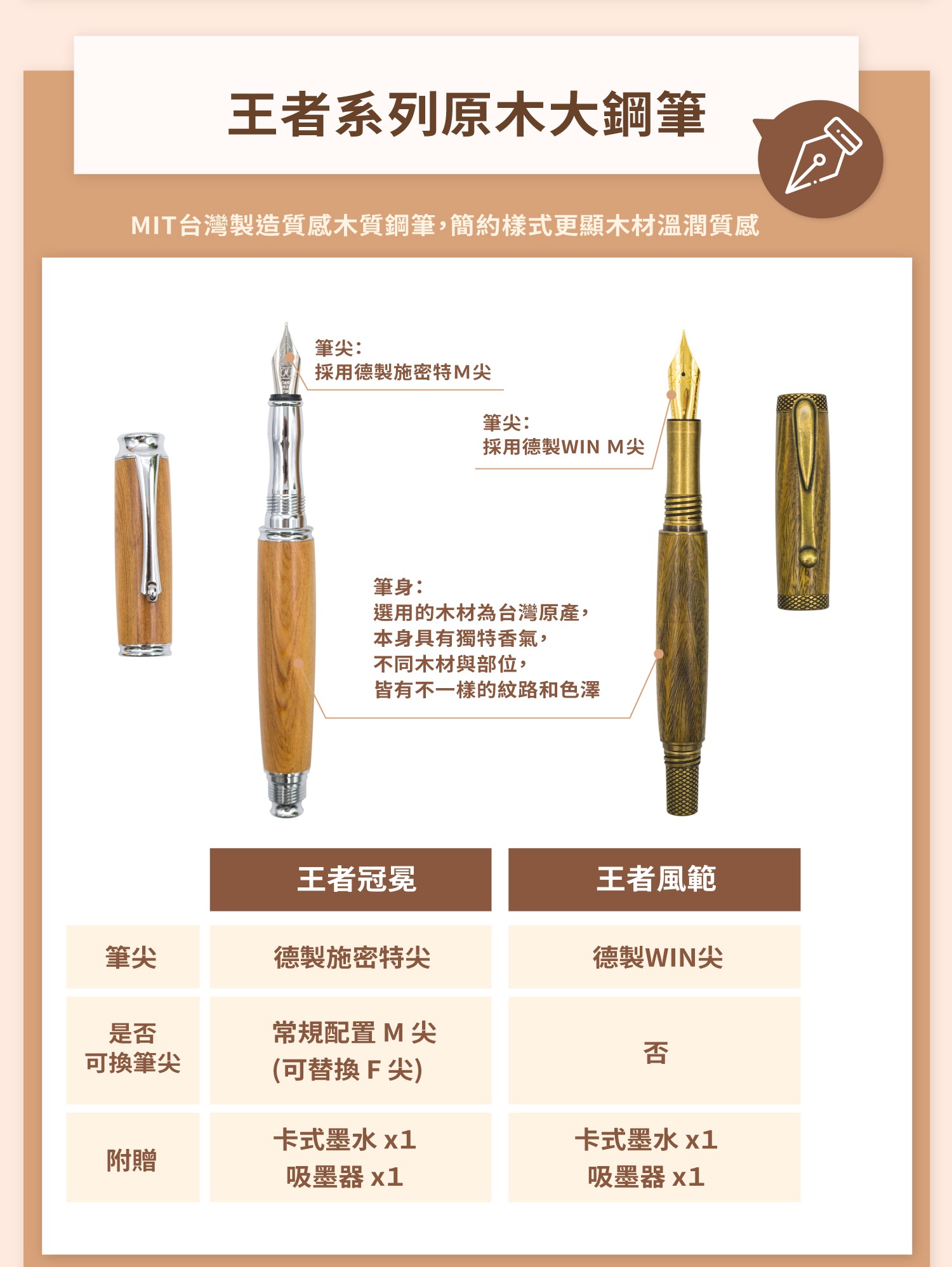 原木大鋼筆-王者系列